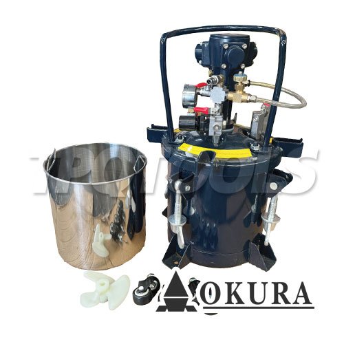 2025A-10L ถังพ่นสีรุ่นมีแกนกวนสีใช้ลม (มีล้อเข็น) ขนาด 10 ลิตร (พร้อมถังสแตนเลส 304) OKURA